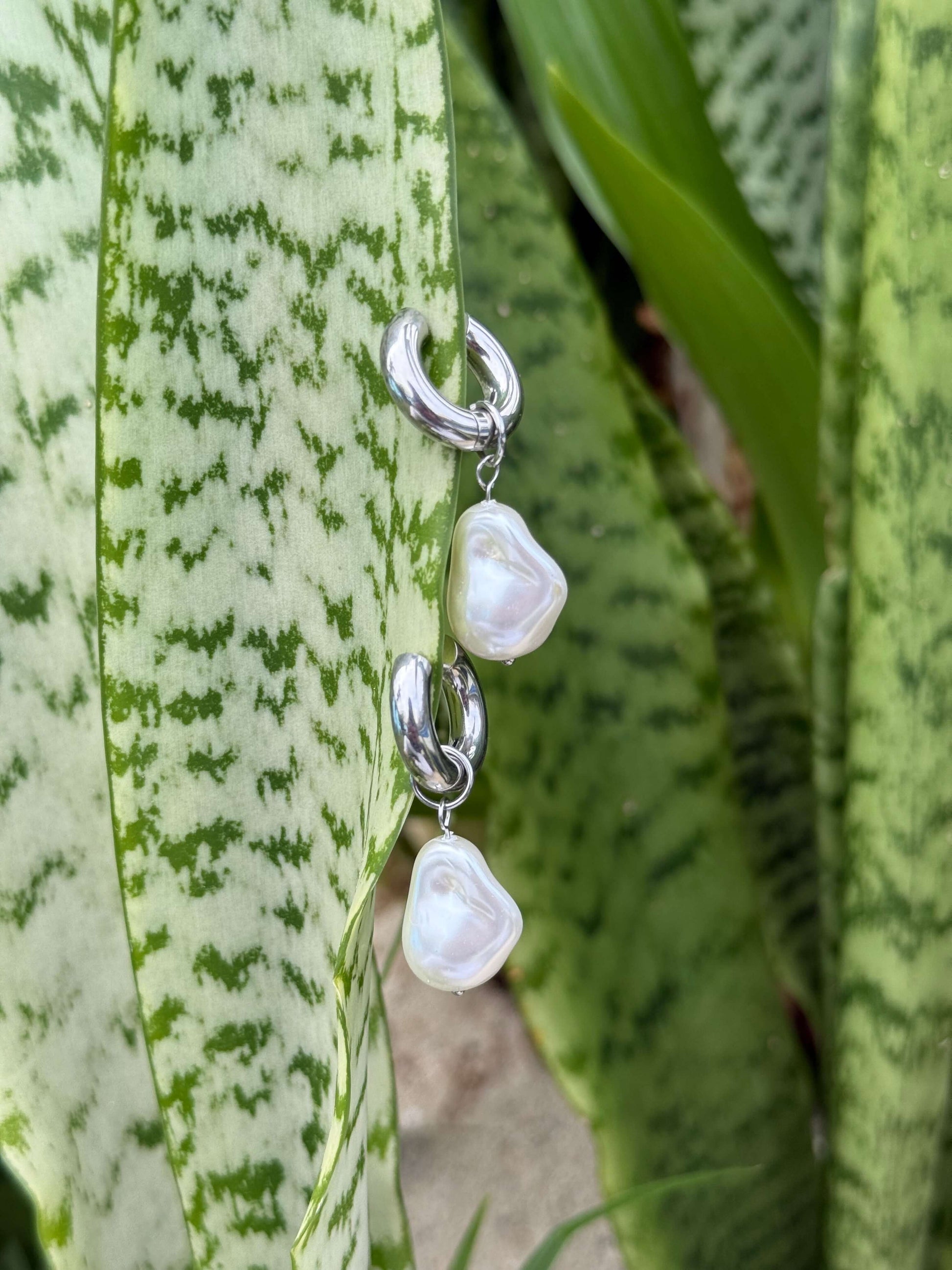 Elegant and raw, Hine Moana embodies the gentle power of the moana. Twin baroque pearls dangle from polished silver hoops like sacred ocean tears each one unique, shaped by tides and time.