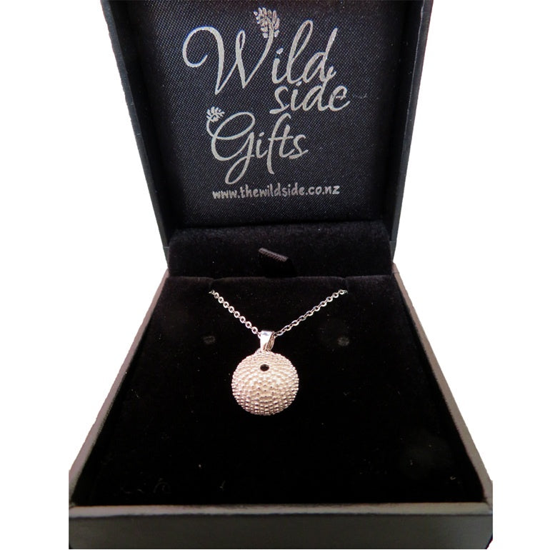 A beautiful sea urchin or Kina pendant on a chain that matches the sterling silver Kina earrings.