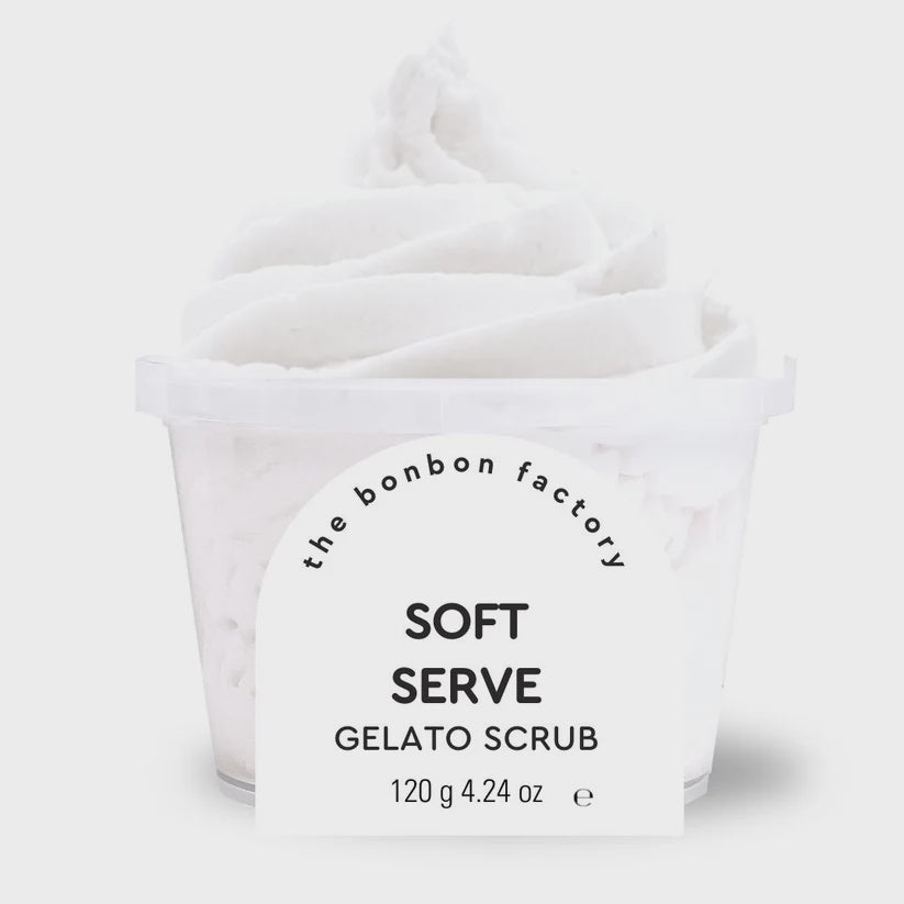 I’m a delicious Soft Serve ice cream scented foaming body scrub to polish away impurities!